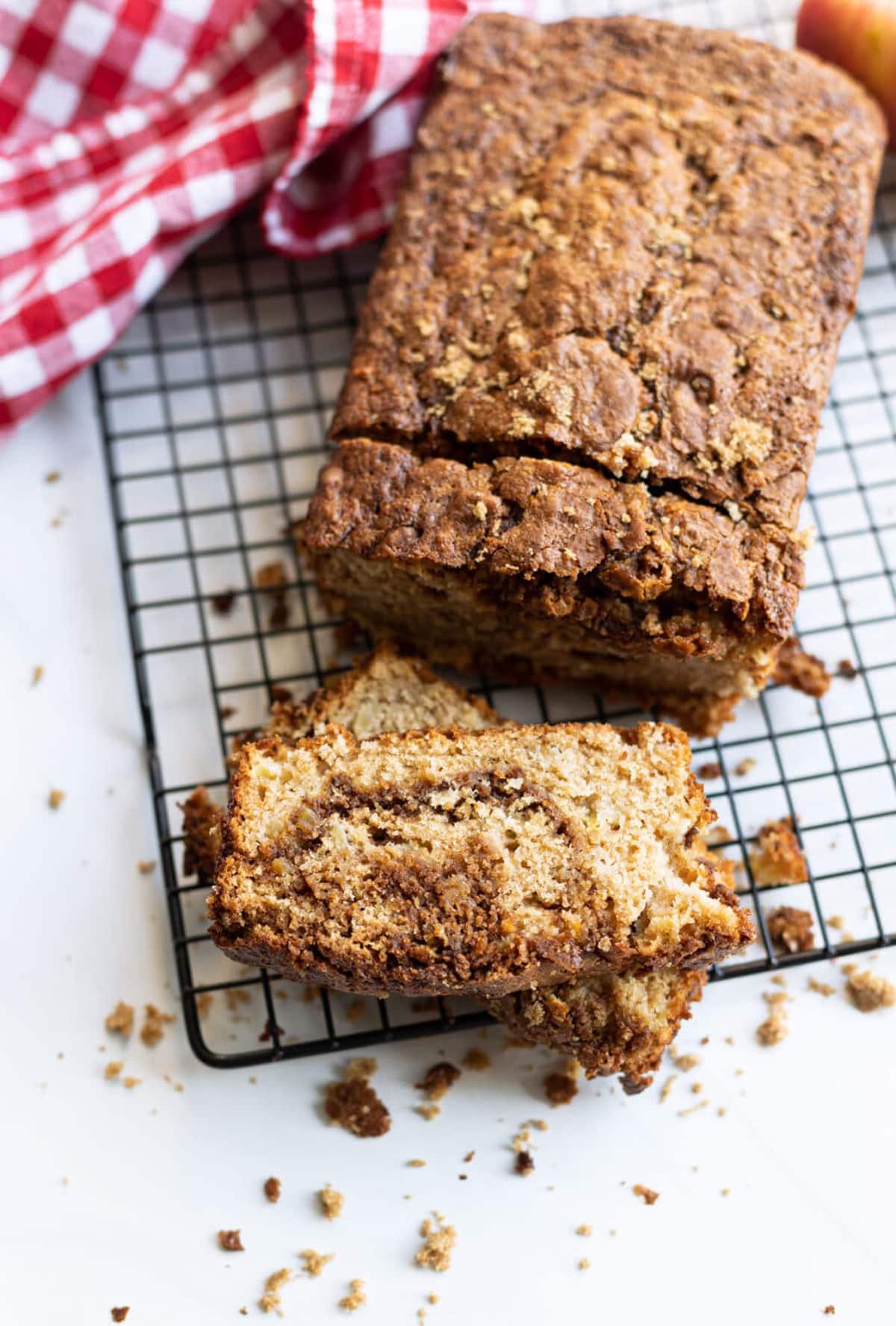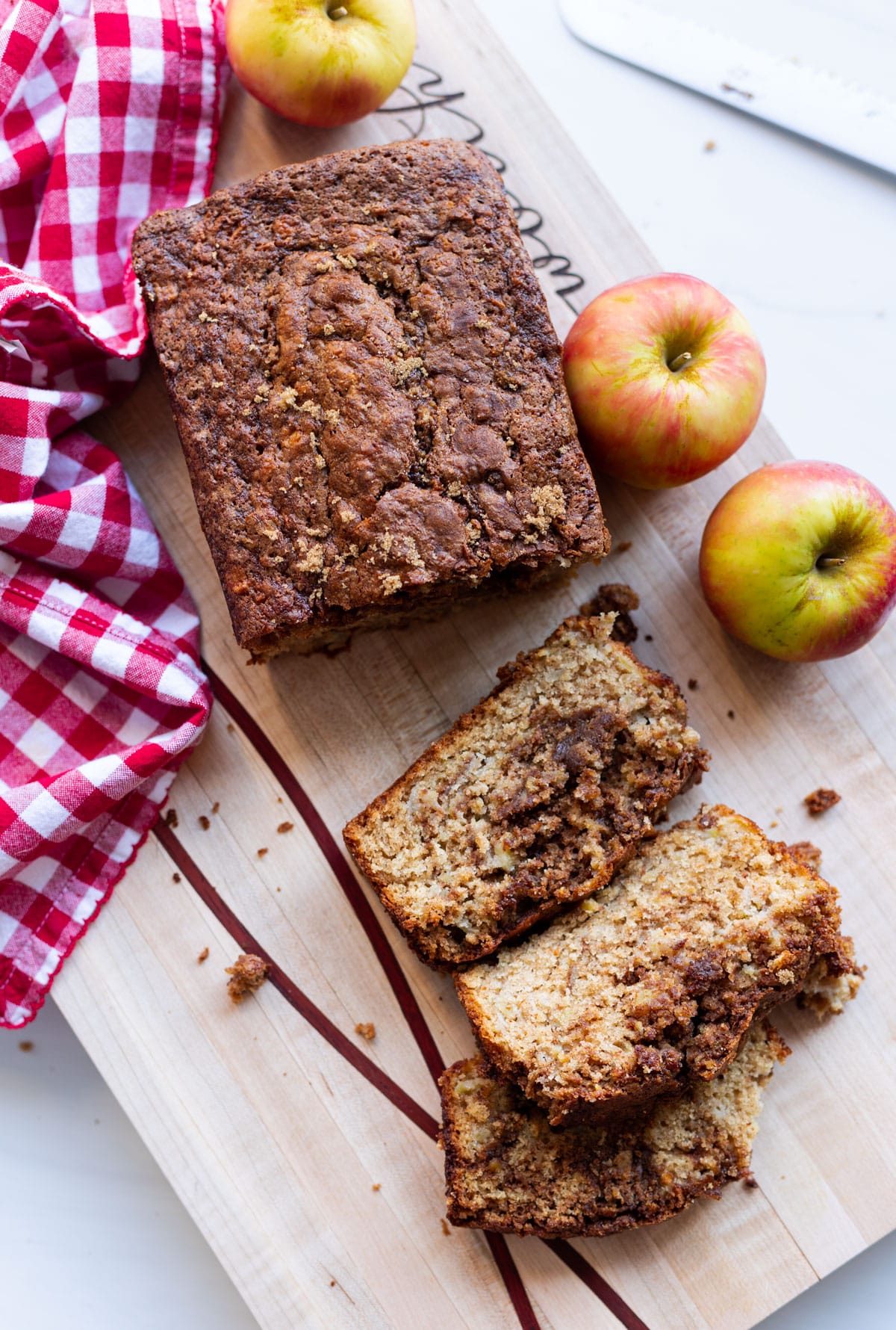 Add this apple cinnamon bread to the top of your fall baking list! You'll love combination of a tender crumb, the satisfying burst of juicy apples with every bite, and the wonderful swirls of cinnamon apple pie spice and brown sugar.