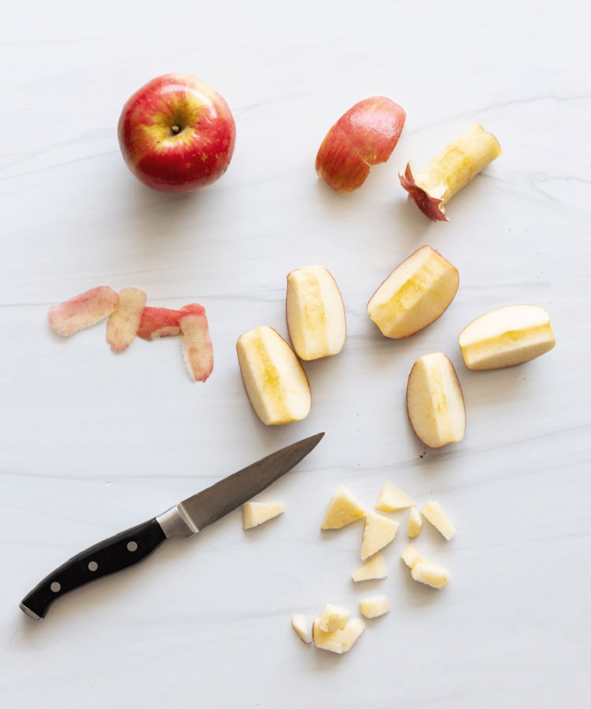 - Peel, core, and finely chop the 3 apples. Set aside.