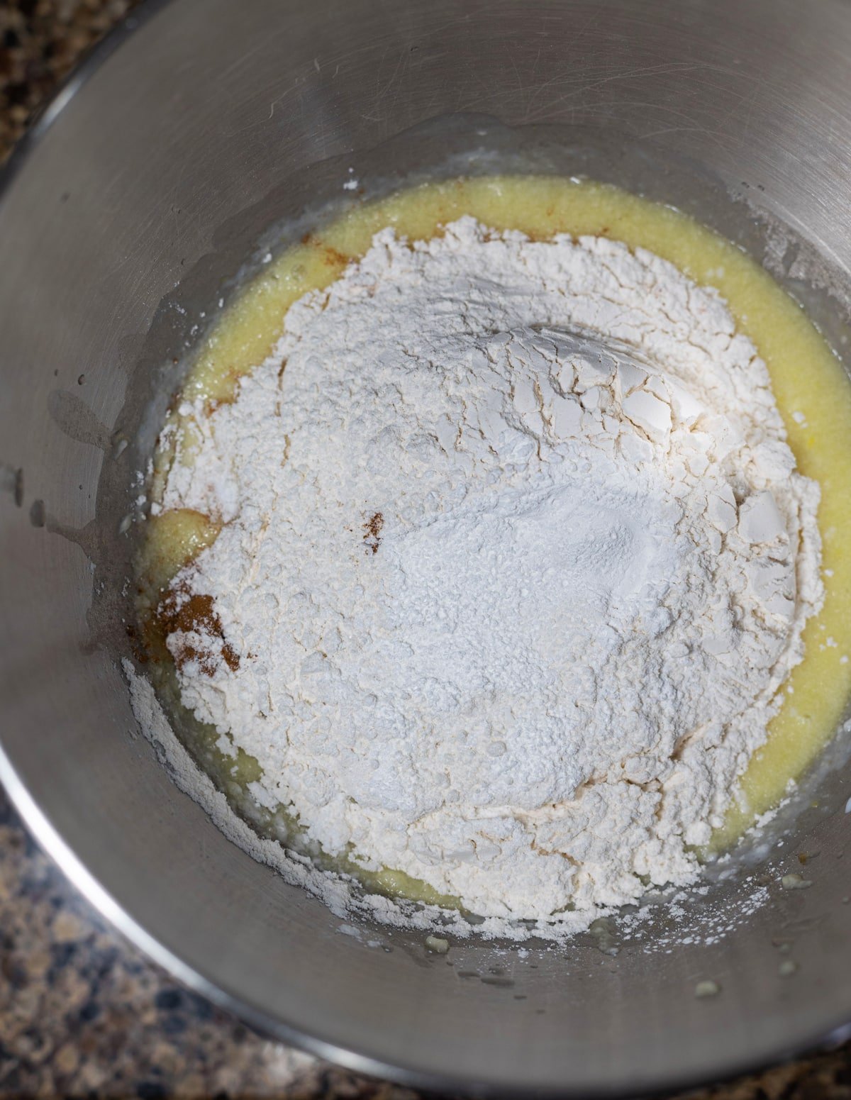 Step 5: Add the flour, baking powder, baking soda, and remaining ½ teaspoon apple pie spice, and salt. Mix on low speed for 1 minute.
